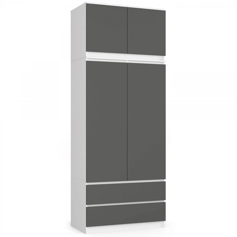 Šatní skříň s nástavbou S90 - bílá/grafit
