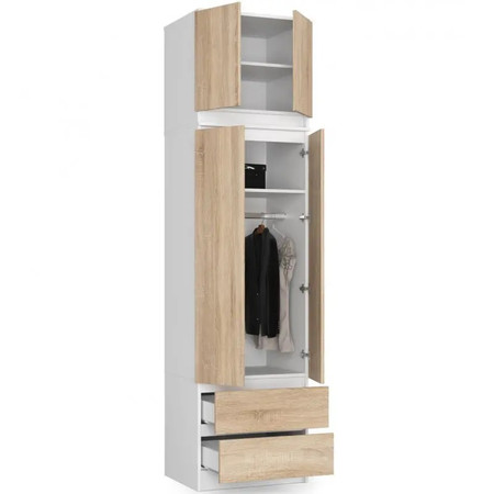 Šatní skříň s nástavbou STAR - bílá/dub sonoma