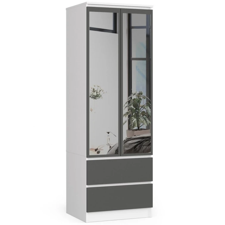 Šatní skříň S60 se zrcadlem - bílá/grafit