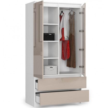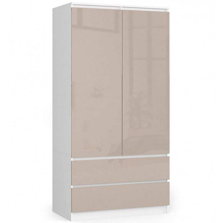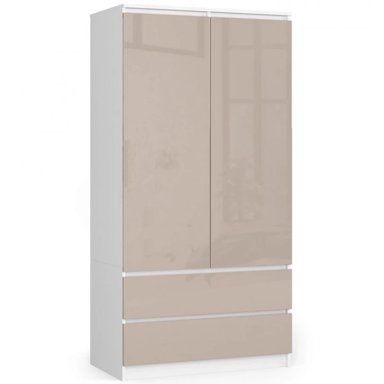 Šatní skříň S90 2 dvířka 2 zásuvky bílá/cappuccino lesk