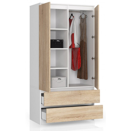 Šatní skříň S90 2 dvířka 2 zásuvky bílá/dub sonoma