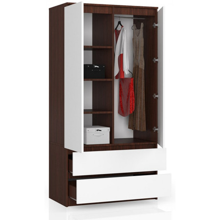 Šatní skříň S90 2 dvířka 2 zásuvky wenge/bílá