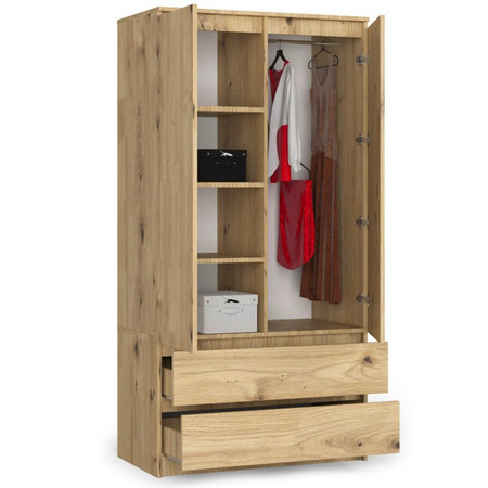 Šatní skříň S90 2D 2SZ CLP, dub artisan