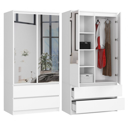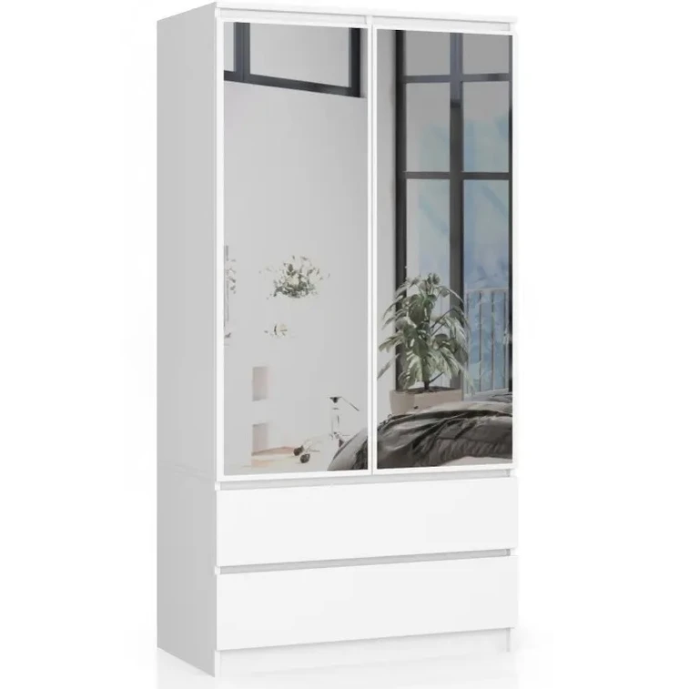Šatní skříň se zrcadly S90 2 dvířka 2 zásuvky bílá