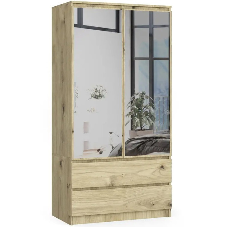 Šatní skříň se zrcadly S90 2 dvířka 2 zásuvky dub sonoma