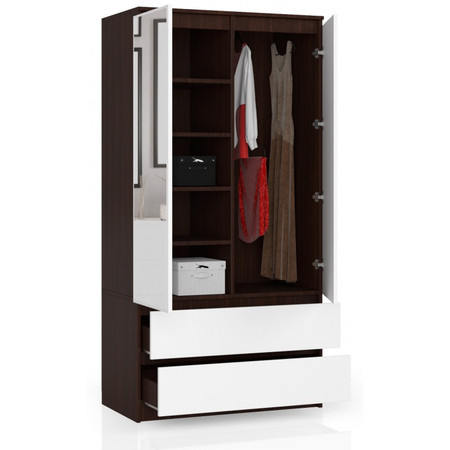 Šatní skříň se zrcadly S90 2 dvířka 2 zásuvky wenge/bílá