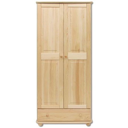 Šatní skříň SF102 je vyrobena z masivního borovicového dřeva, jehož jedinečná struktura a charakteristická kresba zdůrazňují jeho vhled.