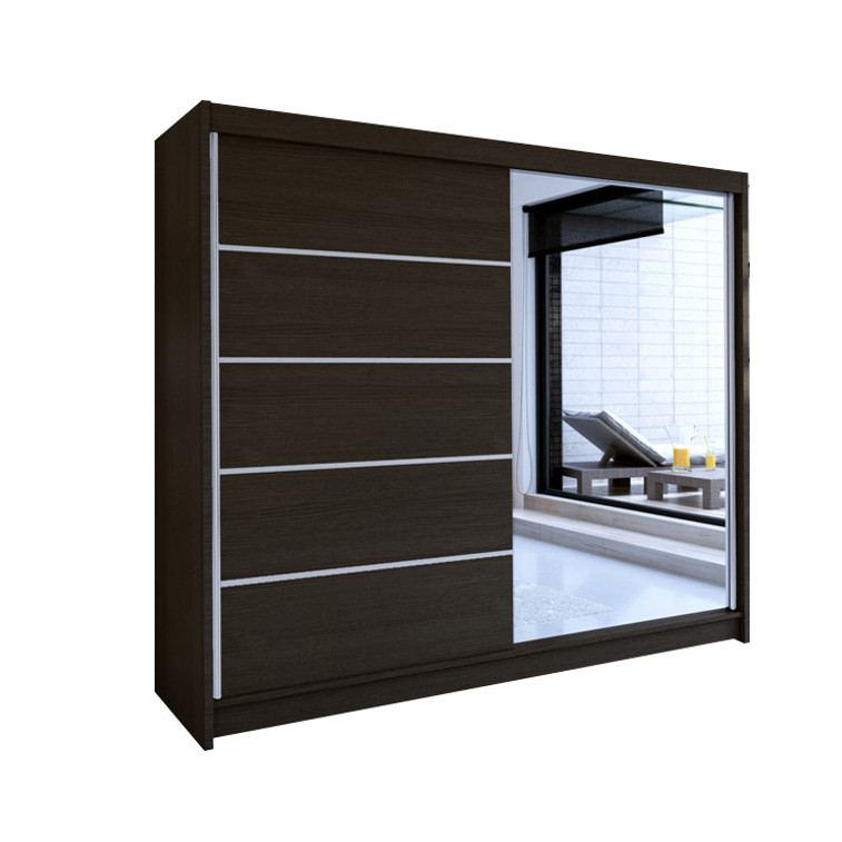 Šatní skříň Talin III je vyrobena v moderním designu a nabízí velké množství praktického úložného prostoru. Neocenitelný je systém trendových posuvných dveří, které usnadňují manipulaci a šetří prostor v interiéru.