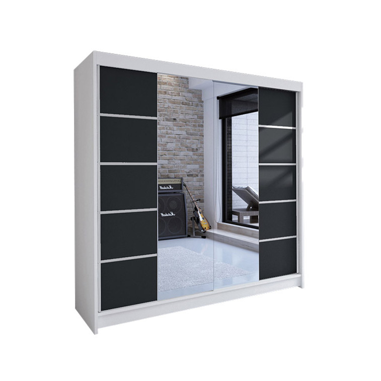Šatní skříň Talin V je vyrobena v moderním designu a nabízí velké množství praktického úložného prostoru. Neocenitelný je systém trendových posuvných dveří, které usnadňují manipulaci a šetří prostor v interiéru.