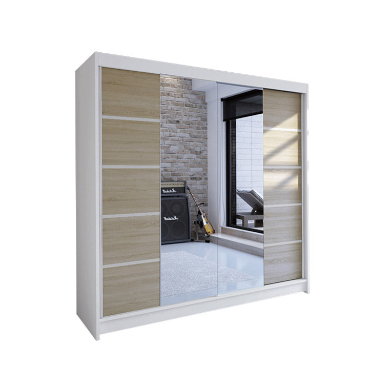Šatní skříň Talin V je vyrobena v moderním designu a nabízí velké množství praktického úložného prostoru. Neocenitelný je systém trendových posuvných dveří, které usnadňují manipulaci a šetří prostor v interiéru.