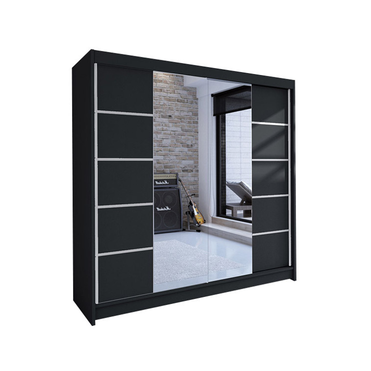 Šatní skříň Talin V je vyrobena v moderním designu a nabízí velké množství praktického úložného prostoru. Neocenitelný je systém trendových posuvných dveří, které usnadňují manipulaci a šetří prostor v interiéru.