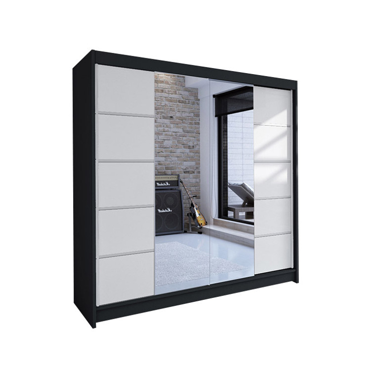 Šatní skříň Talin V je vyrobena v moderním designu a nabízí velké množství praktického úložného prostoru. Neocenitelný je systém trendových posuvných dveří, které usnadňují manipulaci a šetří prostor v interiéru.