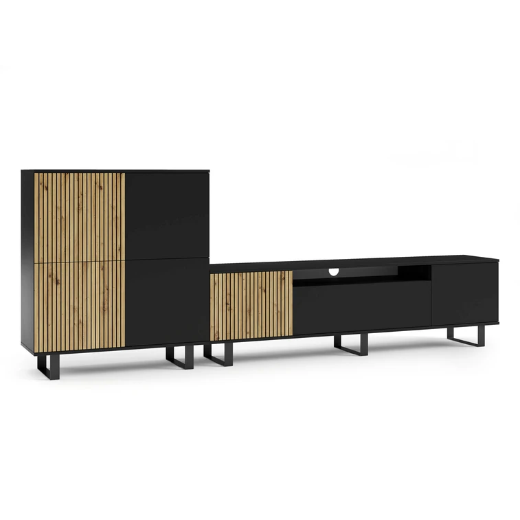 Moderní sestava Ross - komoda 4D + televizní stolek RTV 200 cm.