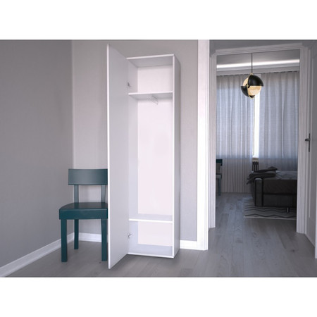 Skříň v moderním stylu splní očekávání všech, kteří oceňují spojení jednoduchosti a elegance. Ideální nabídka pro lidi, kteří ocení krásný nábytek ve svém bytě. Uvnitř šatní skříně jsou dvě praktické police a držák na ramínka.