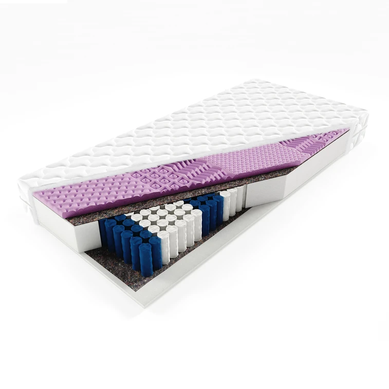 Pružiny: Každá pružina je umístěna v samostatném sáčku z tkaniny. Matrace se tak lépe přizpůsobí tělesné hmotnosti. Pružiny jsou vyrobeny z vysoce kvalitních certifikovaných drátů.