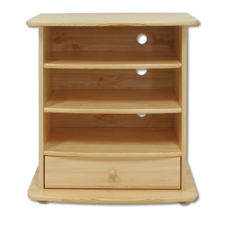 Televizní stolek RV107 je malý, ale funkční, který maximálně využije omezený prostor. Otevřené police o šířce nábytku poslouží k umístění elektroniky, praktická zásuvka umístěná pod policí se zase skvěle hodí pro uložení drobností. Celé je vyrobeno z masivního borovicového dřeva a skvěle zapadne do klasických interiérů.