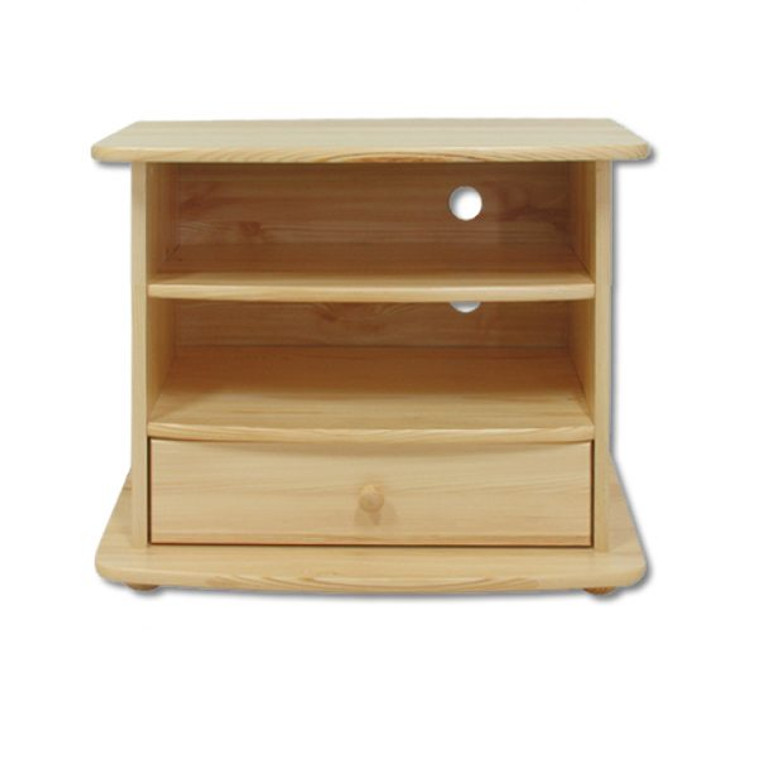 Televizní stolek RV108 je malý, ale funkční, který maximálně využije omezený prostor. Otevřené police o šířce nábytku poslouží k umístění elektroniky, praktická zásuvka umístěná pod policí se zase skvěle hodí pro uložení drobností. Celé je vyrobeno z masivního borovicového dřeva a skvěle zapadne do klasických interiérů.