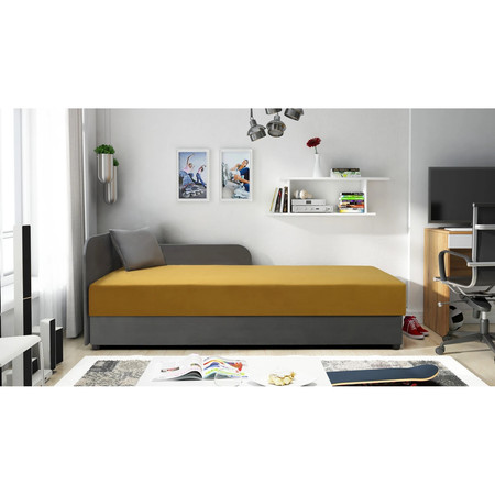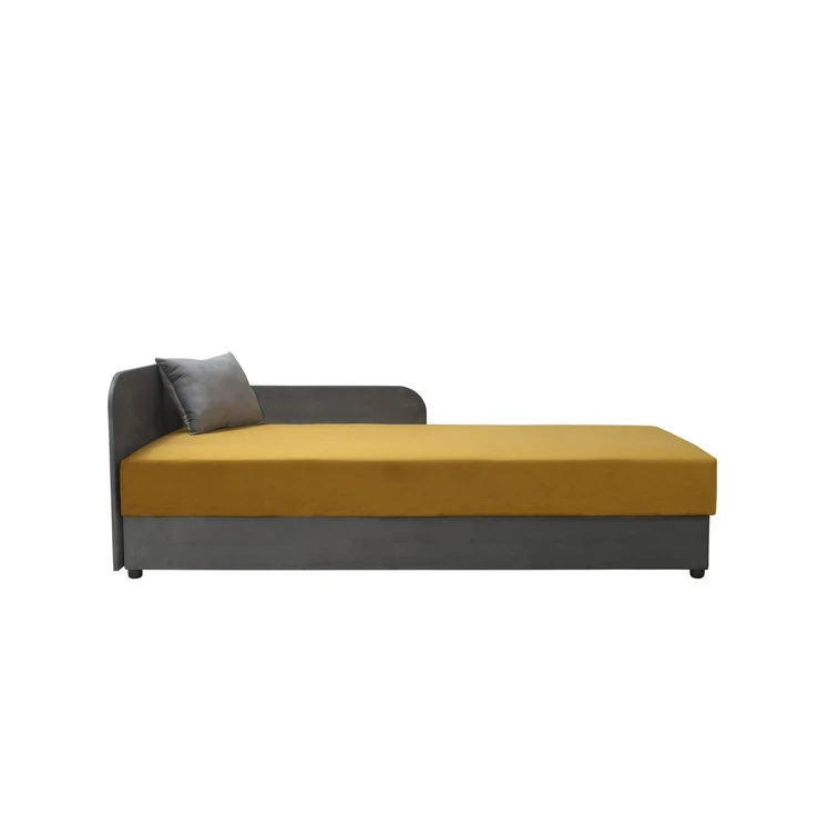 Jednolůžková válenda s úložným prostorem a čelem. Válenda je potažena pevnou a odolnou tkaninou, která je měkká na dotek.
