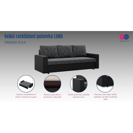 Pohovka je moderní a stylový kus nábytku, který byl navržen s ohledem na lidi kteří oceňují pohodlí a funkčnost. Je vyrobeno z pevných, vysoce kvalitních materiálů. Nohy jsou vyrobeny z plastu.