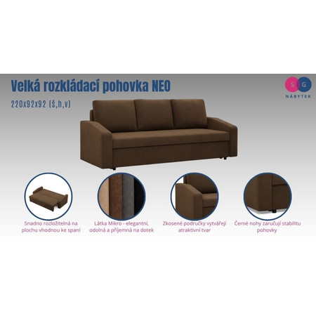 Velká rozkládací pohovka NEO - zkosený bok - model 2.