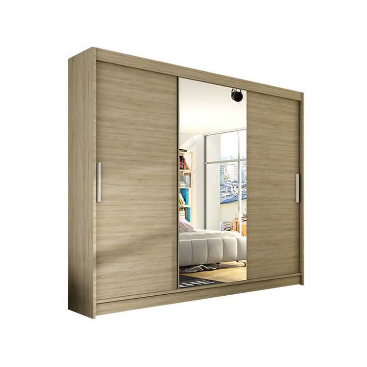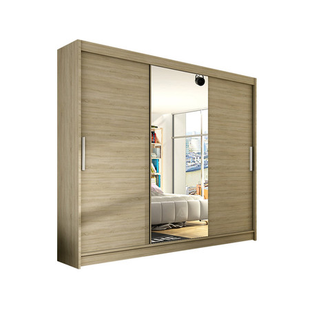 Velká a prostorná šatní skříň Aston I se systémem posuvných dveří. Vyrobena z nejkvalitnějších materiálů. Vodicí systém značně usnadňuje proces otevírání a zavírání šatní skříně. Interiér nábytku je navržen tak, aby v něm bylo místo nejen pro oblečení, ale i jiné drobné osobní předměty. Ideální do ložnice, obývacího pokoje nebo větší haly. Další předností šatní skříně je nádherné velké zrcadlo uprostřed.
