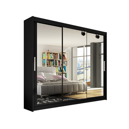 Velká a prostorná šatní skříň Aston III se systémem posuvných dveří. Vyrobena z nejkvalitnějších materiálů. Vodicí systém značně usnadňuje proces otevírání a zavírání šatní skříně. Interiér nábytku je navržen tak, aby v něm bylo místo nejen pro oblečení, ale i jiné drobné osobní předměty. Ideální do ložnice, obývacího pokoje nebo větší haly. Další předností šatní skříně je nádherné velké zrcadlo.