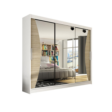 Posuvná skříň Aston se třemi posuvnými dveřmi. Jednoduché a velké zrcadlo opticky zvětší celou místnost. Vyrobeno z nejkvalitnějších materiálů. Hliníkové vodící lišty jsou umístěny jak ve spodní, tak i v horní části dveří, což ovlivňuje plynulost otevírání a zavírání.