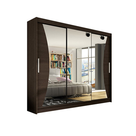 Posuvná skříň Aston se třemi posuvnými dveřmi. Jednoduché a velké zrcadlo opticky zvětší celou místnost. Vyrobeno z nejkvalitnějších materiálů. Hliníkové vodící lišty s ložisky jsou umístěny jak ve spodní, tak i v horní části dveří, což ovlivňuje plynulost otevírání a zavírání.