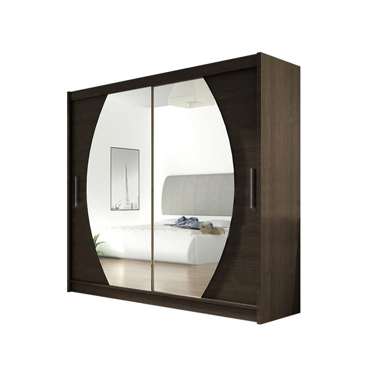 Dvoudveřová šatní skříň se systémem posuvných dveří, která usnadňuje každodenní používání. Moderní, funkční a elegantní. Určeno pro bezpečné uložení oděvů a jiných osobních věcí. Vyznačuje se velkými zajímavými zrcadly na dveřích, která opticky zvětší a prosvětlí každou místnost.