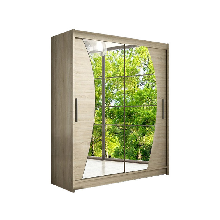 Dvoudveřová šatní skříň se systémem posuvných dveří má krásný zrcadlový design. Je vyrobena z nejkvalitnějších materiálů. Další výhodou šatní skříně jsou krásné dlouhé stříbrné úchytky. Díky vodícímu systému se snadno otevírá.