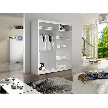 Dvoudveřová posuvná skříň Miami I. Ideální do menších prostorů. Šatní skříň má jednoduchý design bez zrcadel, díky němuž se hodí do všech místností.