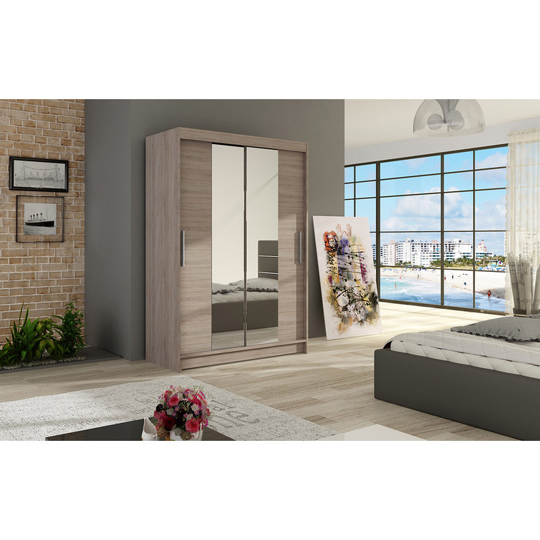 Šatní skříň Miami II je vyrobena v moderním designu a nabízí praktický úložný prostor (viz obrázek). Neocenitelný je systém trendových posuvných dveří (hliníkový pojezd), které usnadňují manipulaci. Korpus a dveře jsou vyrobeny z kvalitního lamina (16 mm) se vsazeným zrcadlem. Výhodou šatní skříně Miami je malá velikost a vejde se i do menšího interiéru. Údržba je snadná, povrh je lehce umyvatelný, odolný vůči působení vody a zvýšené teplotě. Skříň je dodávána v demontu a v různém barevném provedení. V případě dotazu nás neváhejte kontaktovat.