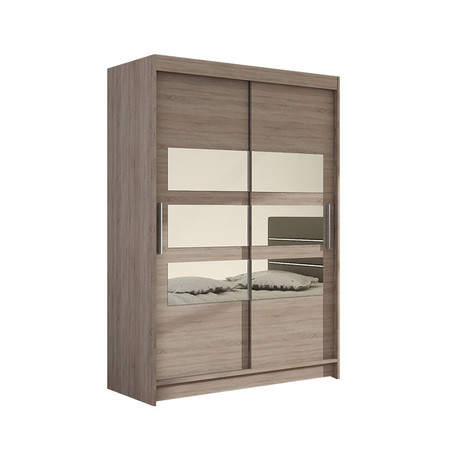 Šatní skříň s posuvnými dveřmi Miami V. Šatní skříň je extrémně odolná díky nejkvalitnějším materiálům použitým při její výrobě. Zrcadla umístěná na čelech šatní skříně jí dodávají další kouzlo a opticky zvětšují místnost. Skříň je velmi prostorná.