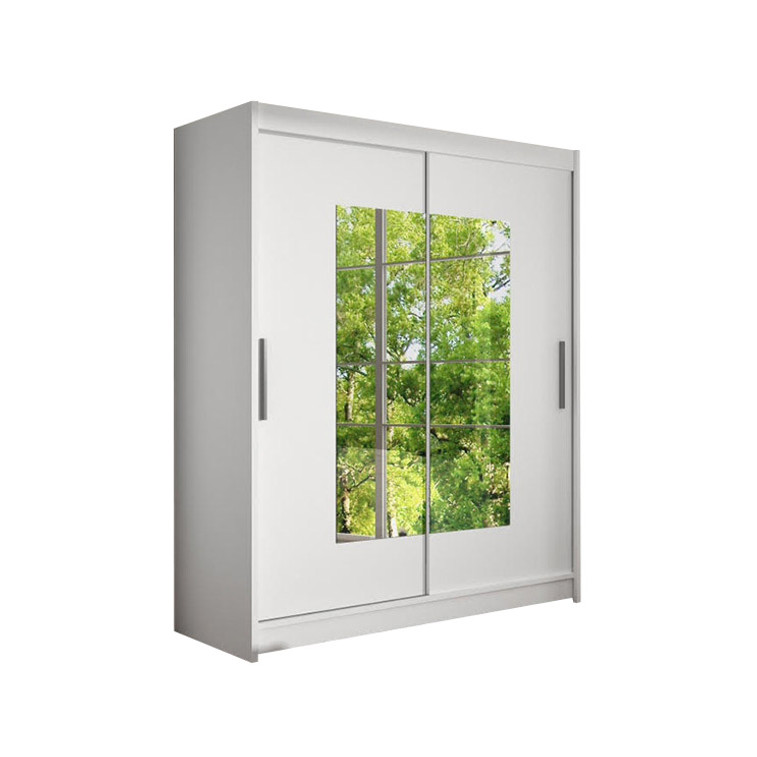 Šatní skříň Westa III je moderní a funkční kus nábytku ideální do ložnice, obývacího pokoje nebo předsíně. Skvěle poslouží i v dětském pokoji. Středně velká zrcadla na dveřích.