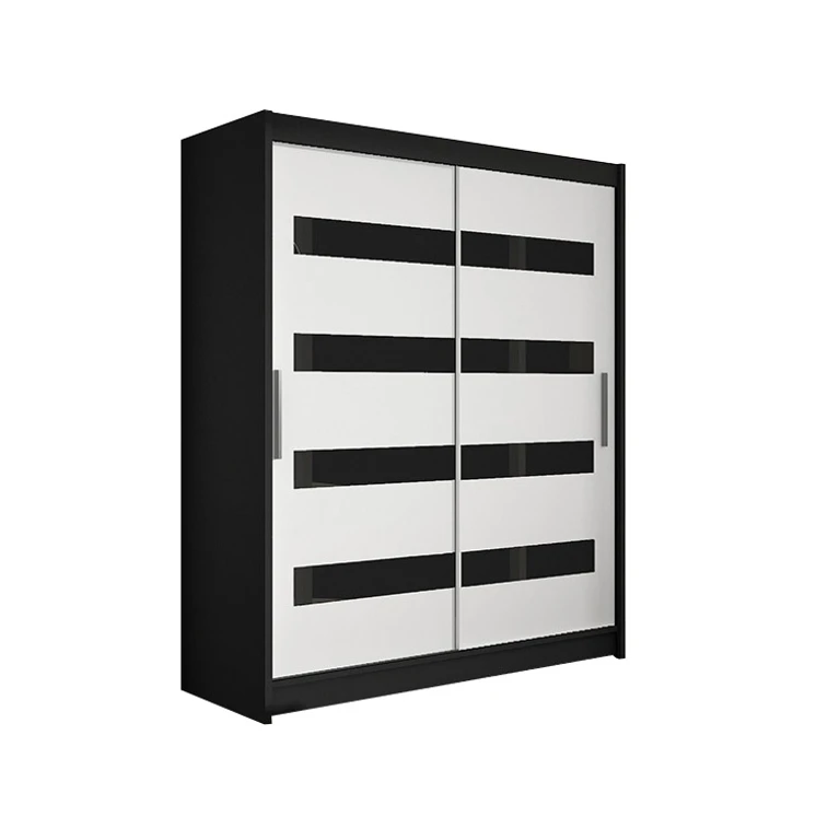 Praktická a pevná šatní skříň se systémem posuvných dveří Westa IV. Kontrastní vložky na přední straně jsou vyrobeny ze skla Lacobel, zdůrazňující zajímavý design nábytku. Lacobel je druh skla pokrytý vysoce kvalitním lakem. Je odolný vůči vysokým teplotám a UV záření, nebledne. Také se extrémně snadno udržuje v čistotě, protože má jednotný a hladký povrch. Další výhodou je vodicí systém, který usnadňuje používání nábytku.
