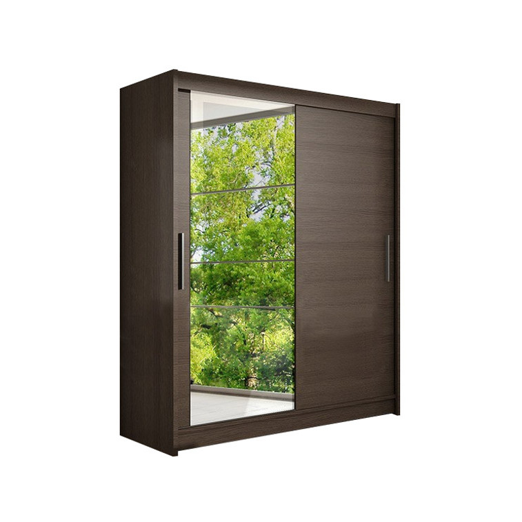 Šatní skříň Westa VI je moderní a funkční kus nábytku. Velké zrcadlo na jedné straně dělá nábytek atraktivní. Má prakticky poskládaný vnitřek a vodící lišty ve skříni, díky nimž lze dveře snadno a hladce posouvat.