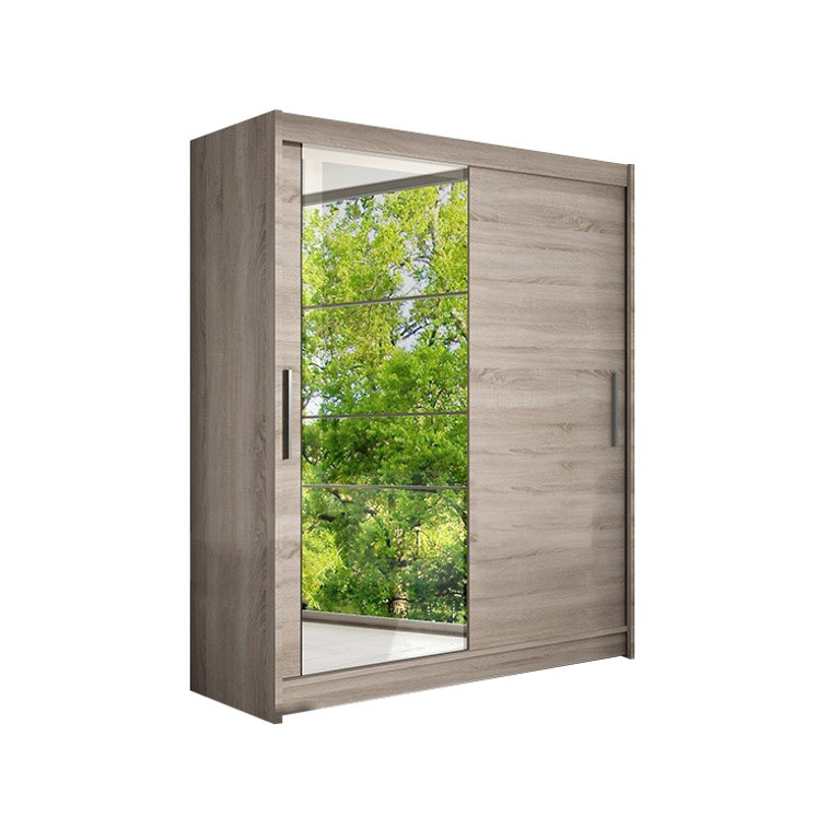 Šatní skříň Westa VI je moderní a funkční kus nábytku. Velké zrcadlo na jedné straně dělá nábytek atraktivní. Má prakticky poskládaný vnitřek a vodící lišty ve skříni, díky nimž lze dveře snadno a hladce posouvat.