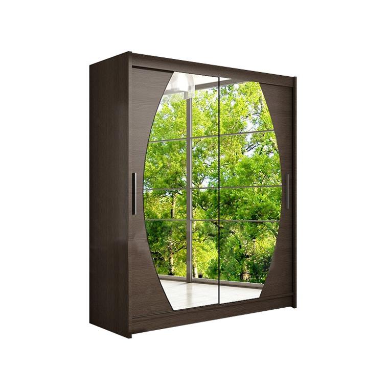 Skříň Westa VIII se systémem posuvných dveří. Zrcadlo oválného tvaru výrazně zvětšuje místnost, ve které je šatní skříň umístěna. Šatní skříň je ideálním prvkem do každé ložnice, obývacího pokoje nebo dětského pokoje. Vodicí systém výrazně usnadňuje otevírání a zavírání šatní skříně.