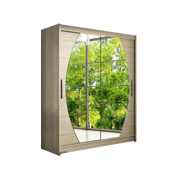 Skříň Westa VIII se systémem posuvných dveří. Zrcadlo oválného tvaru výrazně zvětšuje místnost, ve které je šatní skříň umístěna. Šatní skříň je ideálním prvkem do každé ložnice, obývacího pokoje nebo dětského pokoje. Vodicí systém výrazně usnadňuje otevírání a zavírání šatní skříně.