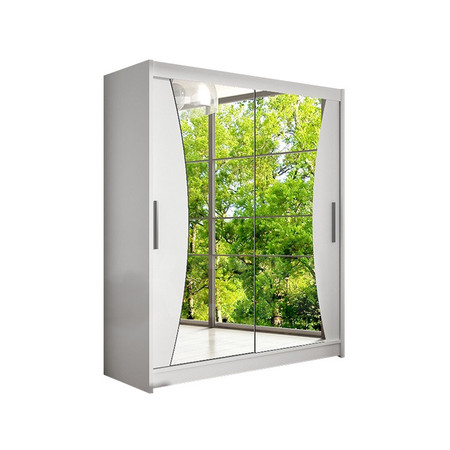 Posuvná skříň Westa X kombinuje klasickou jednoduchost a moderní design. Zrcadlo umístěné na čelech ve tvaru oblouku dodává své jedinečné kouzlo. Je ideální jako šatní skříň do předsíně nebo místo pro uložení oblečení v ložnici nebo jiných drobností každodenní potřeby. Střed šatní skříně je rozdělen na dvě stejné části. Na pravé straně jsou police a na levé straně závěsná šatní tyč.