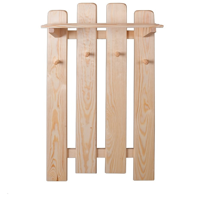 Věšák WS132 s háčky je praktickým a zároveň pěkným doplňkem každé předsíně nebo chodby. Tato stěna je vyrobena z přírodní masivní borovice a obsahuje řadu dřevěných háčků, které jsou využitelné pro zavěšení různého oblečení. Tento výrobek se vyznačuje pečlivým zpracováním a dlouhou životností.
